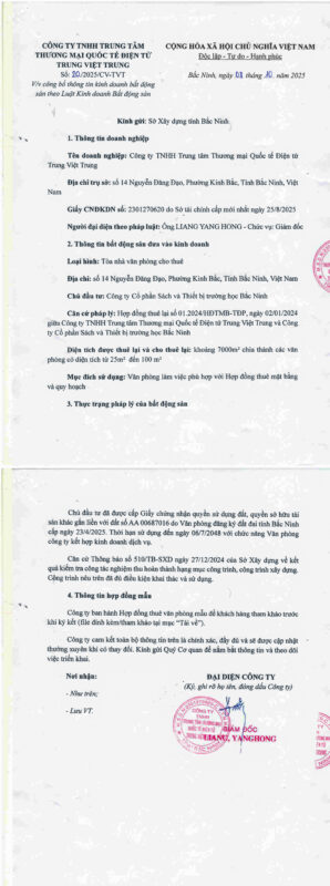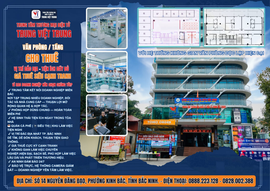 Trung tâm thương mại quốc tế điện Tử Trung Việt Trung được mệnh danh là “Hoa Cường Bắc phiên bản Việt Nam”, đã chính thức khai trương vào ngày 18 tháng 6 năm 2024 tại Số 14 Nguyễn Đăng Đạo, phường Kinh Bắc, tỉnh Bắc Ninh, Việt Nam.