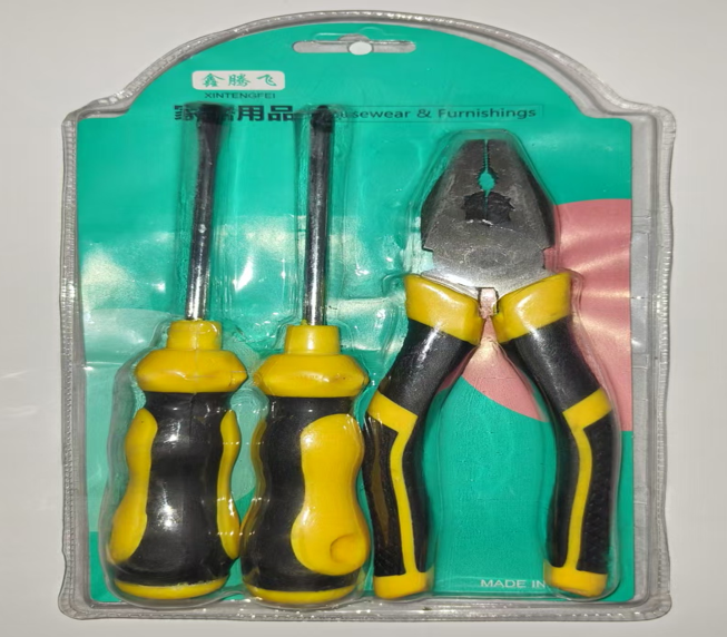 Bộ sản phẩm bao gồm hai tuốc nơ vít (có thể là tuốc nơ vít dẹt và tuốc nơ vít bake) và một chiếc kìm (có thể là kìm mỏ nhọn hoặc kìm kết hợp).