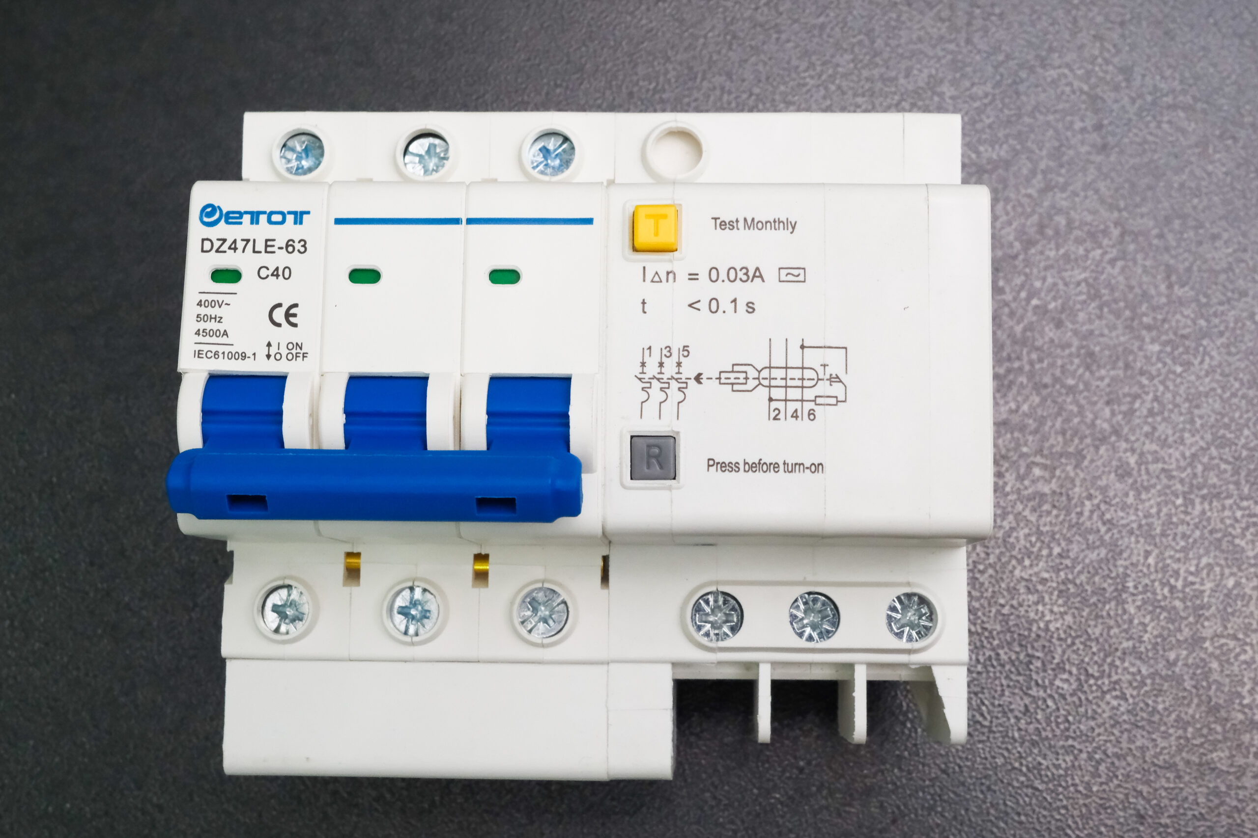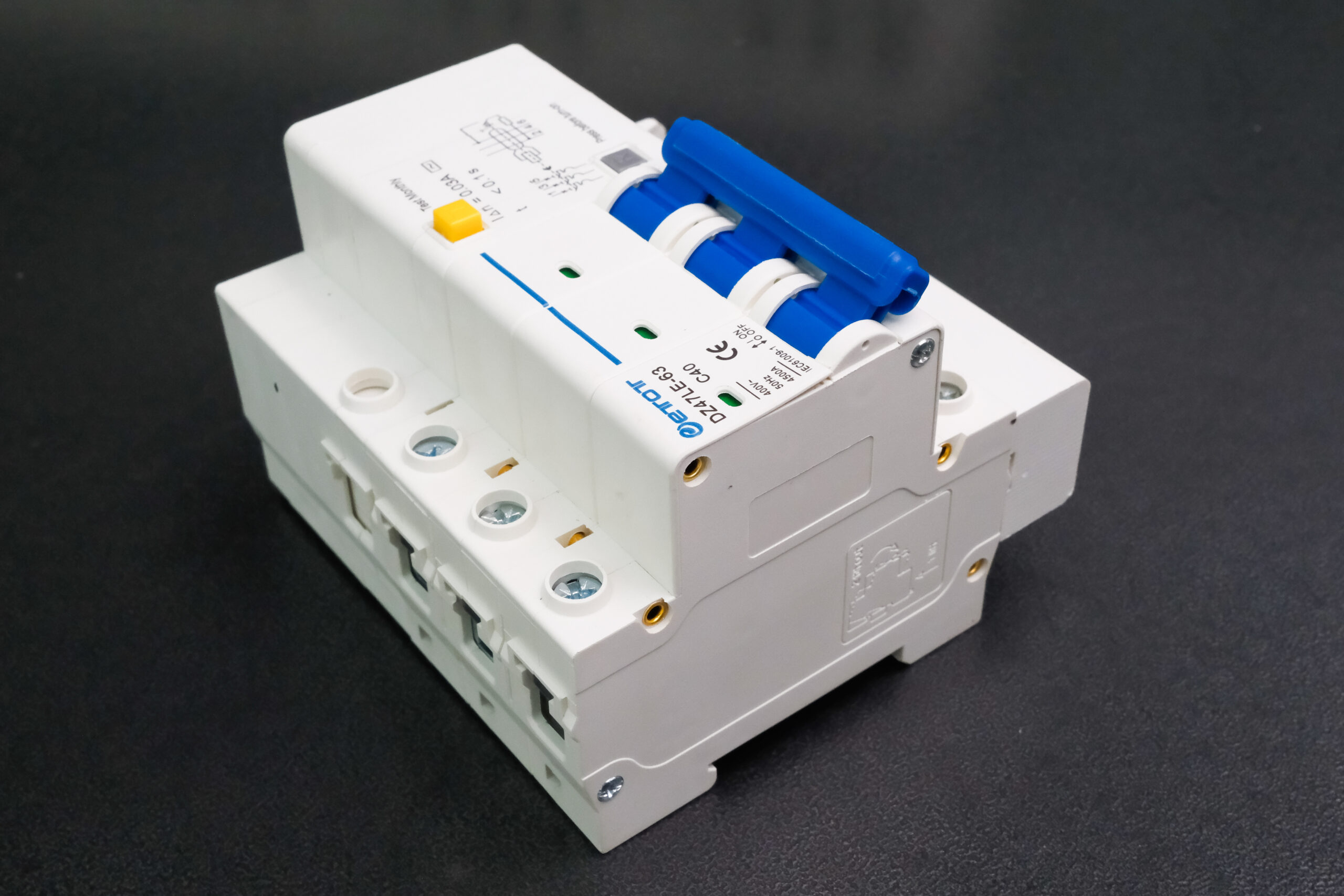 Engineered to meet high standards, the Aptomat DZ47LE-63 3PC40 operates at 400V with a frequency of 50Hz and 4500A breaking capacity. Its three-pole design is perfect for distributed systems, providing stable and consistent performance even under demanding conditions. Additional features include: